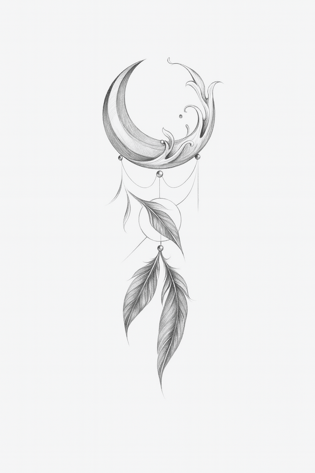 Die Kombination aus Mond (Emotion, Intuition), Wellen (Bewegung, Wandel) und Federn (Leichtigkeit, Botschaften) erzählt von einer Seele, die schon durch viele Hochs und Tiefs gegangen ist – und jetzt gelernt hat, mit dem Fluss zu gehen, statt dagegen anzukämpfen.
