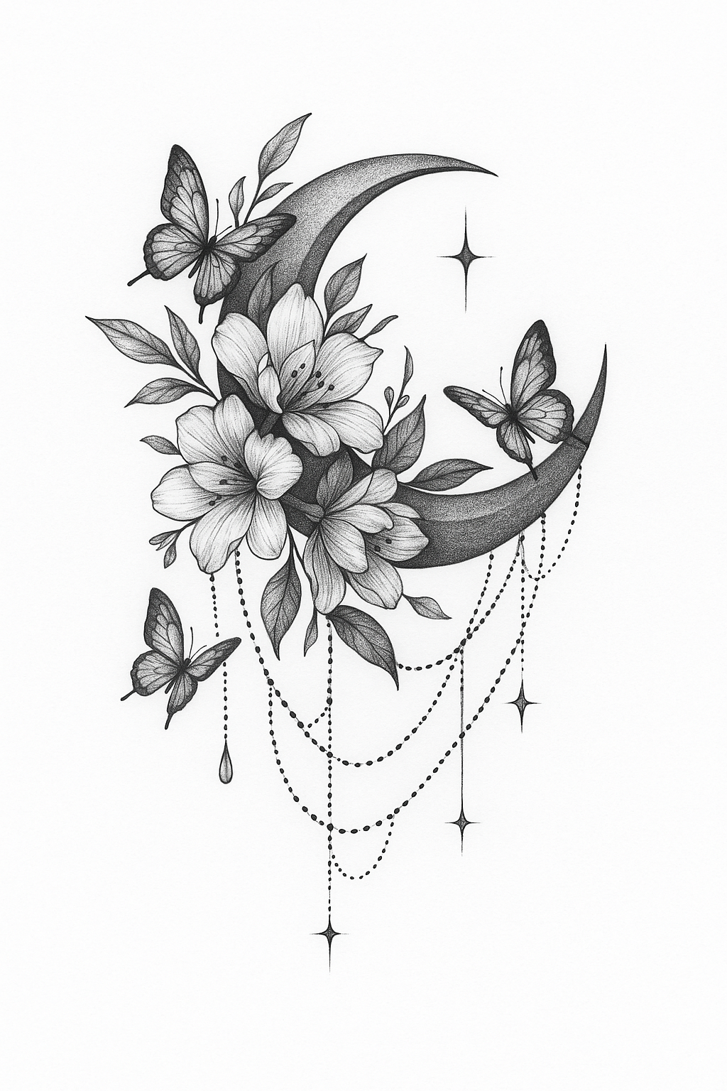 Gemeinsam erzählen sie: Du hast dich verwandelt und tust es immer wieder – jede Phase deines Lebens hat dich näher zu dir selbst gebracht. Dieses Motiv passt wunderbar für alle, die eine große Veränderung, Heilung oder einen Neubeginnmit sich tragen.