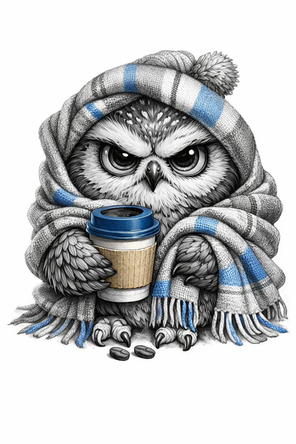 Dieses Design ist perfekt fĂźr alle, die Humor, Charakter und ein kleines bisschen Chaos lieben. Die eingekuschelte Eule mit Kaffeebecher wirkt gleichzeitig mĂźde, genervt und absolut liebenswert â genau diese Mischung macht sie so besonders. Ein Motiv mit Augenzwinkern, aber trotzdem viel Stil.