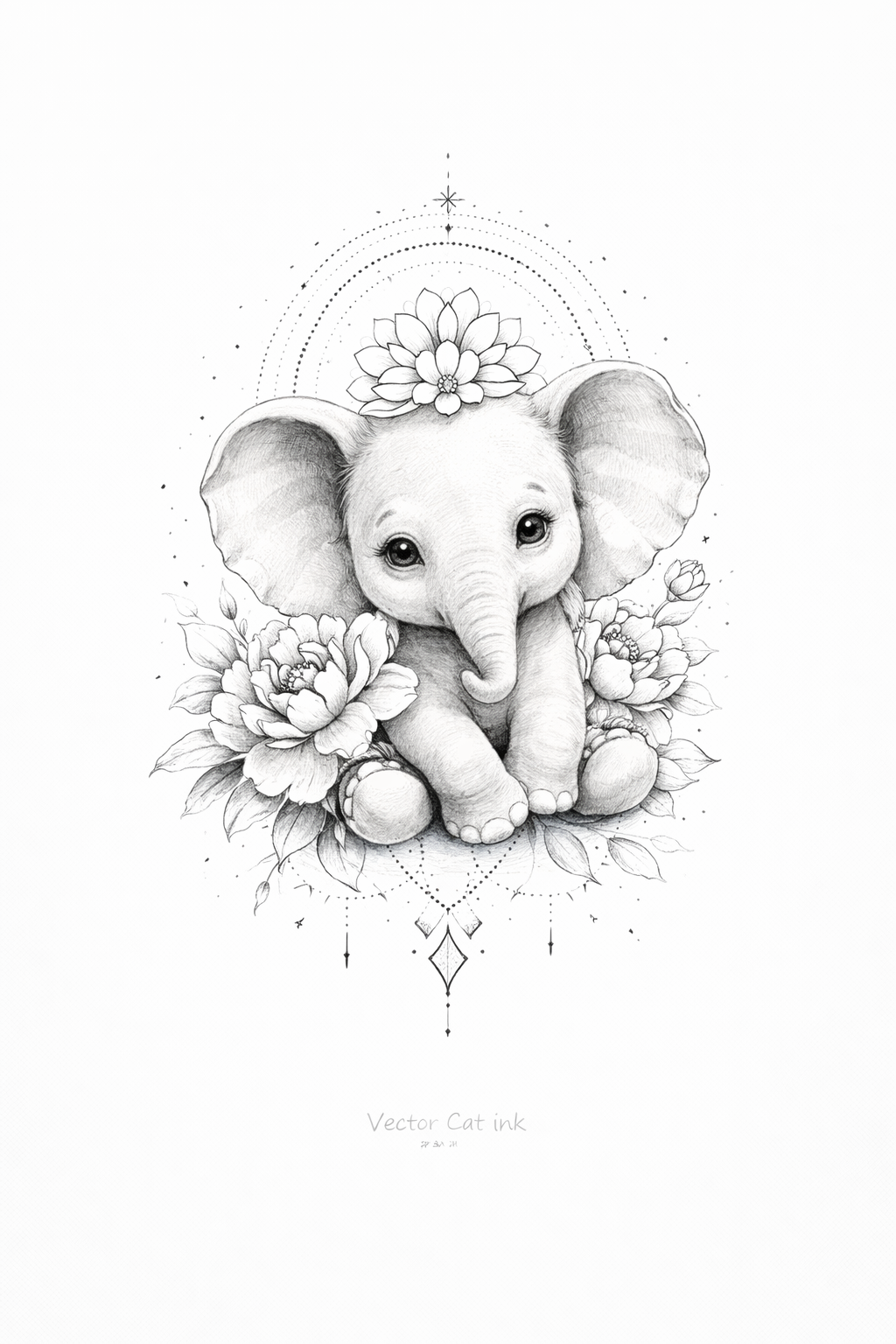 Dieses Baby-Elefant-Motiv steht für innere Stabilität, Weisheit und liebevolle Kraft. Elefanten werden oft mit Stärke, Beständigkeit und einem ruhigen, beschützenden Wesen verbunden.