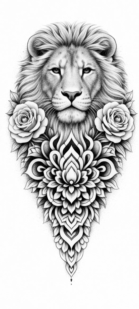 Der Löwe steht für Würde, Schutz und eine natürliche Form von Führung. Die Rosen verleihen ihm eine emotionale Tiefe und zeigen, dass wahre Größe nicht hart sein muss. Dieses Tattoo ist für Menschen, die ein starkes Herz haben, ihre Werte kennen und mit ruhiger Selbstverständlichkeit ihren Platz einnehmen.