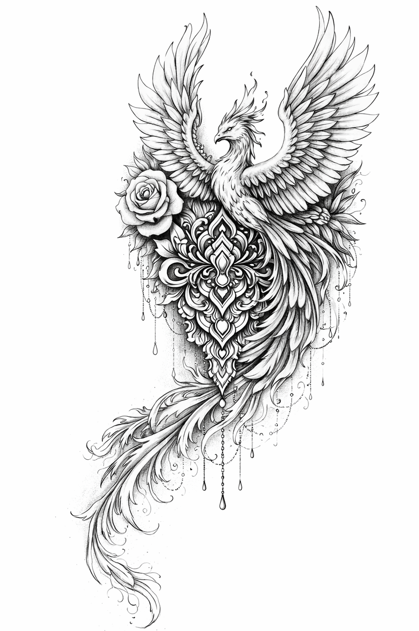 Der Phönix steht für Transformation, Neubeginn und die Kraft, aus schweren Zeiten schöner, klarer und wahrhaftiger hervorzugehen. Die Rose bringt Liebe, Verletzlichkeit und Herzenergie in das Motiv. Dieses Design ist ein starkes Symbol für alle, die sich selbst neu erschaffen haben – nicht trotz ihrer Geschichte, sondern durch sie.