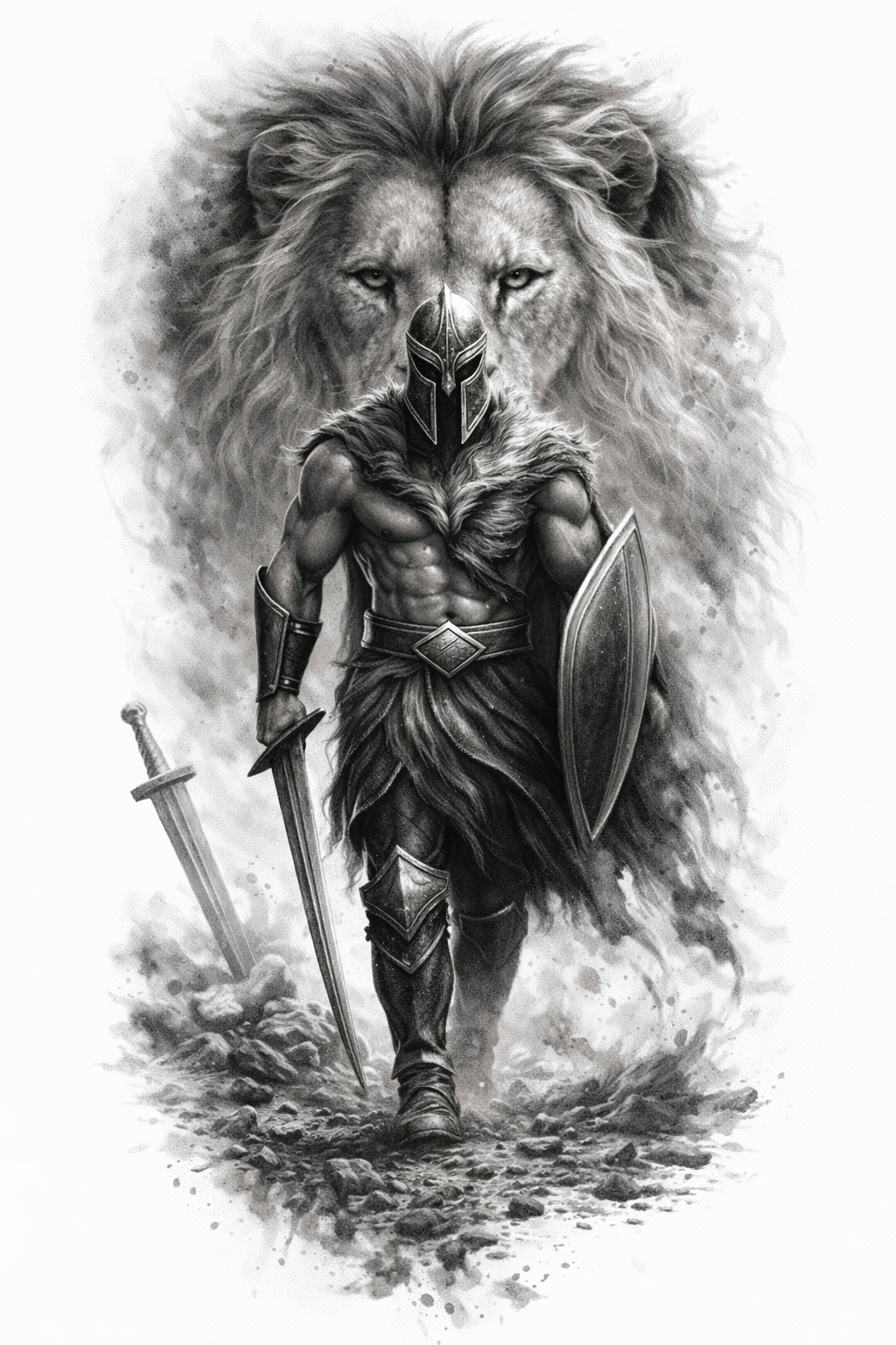 Für den Träger wirkt dieses Tattoo kompromisslos, stark und heroisch. Es ist gemacht für Menschen, die eine mächtige, maskuline Bildsprache wollen und ein Design suchen, das sofort Eindruck macht und seinen Platz einnimmt.